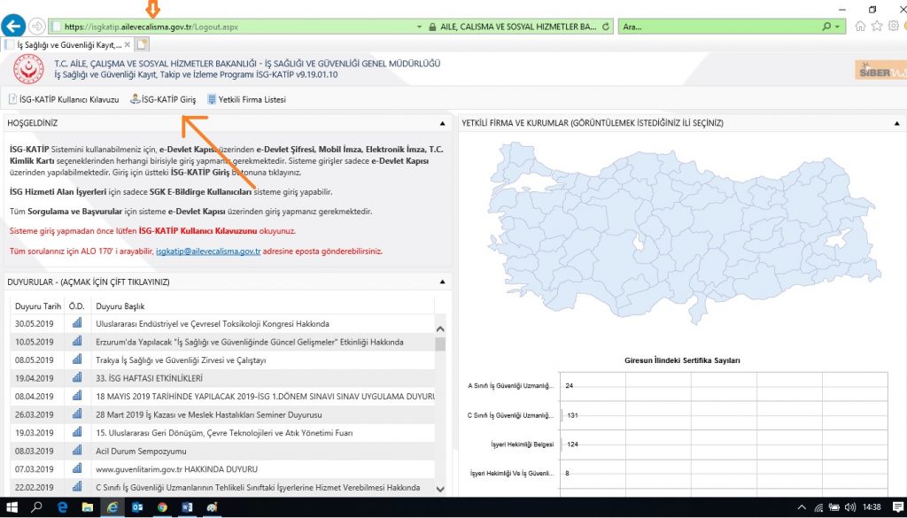 ÖNEMLİ : İSG KATİP Sisteminden yapılan görevlendirmelere sadece Firma E-Bildirge Yetkilisi tarafından onay verilebilmektedir.