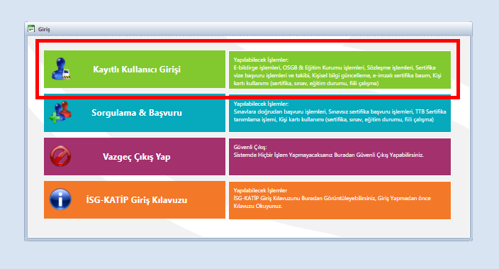 Açılan pencerede “İSG KATİP GİRİŞ” butonuna tıklayınız. (RESİM 1)
